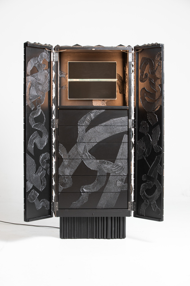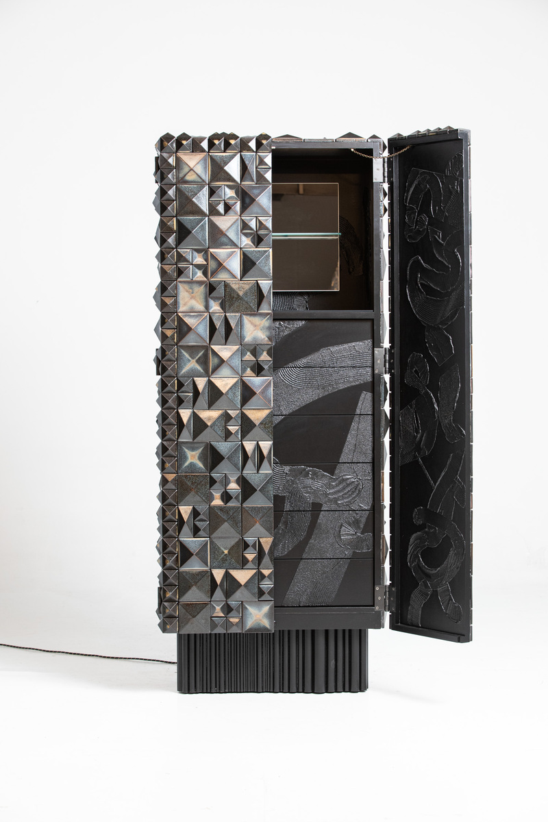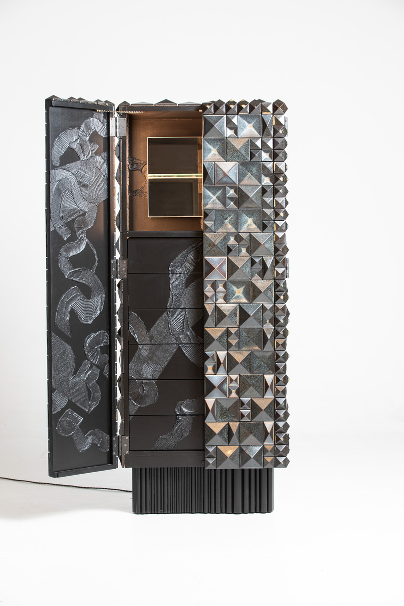 Cabinet Dark matter 2021 collection dark matter Vávra, Pekař, Skřivanková Cominations of wood, ceramic and painting.