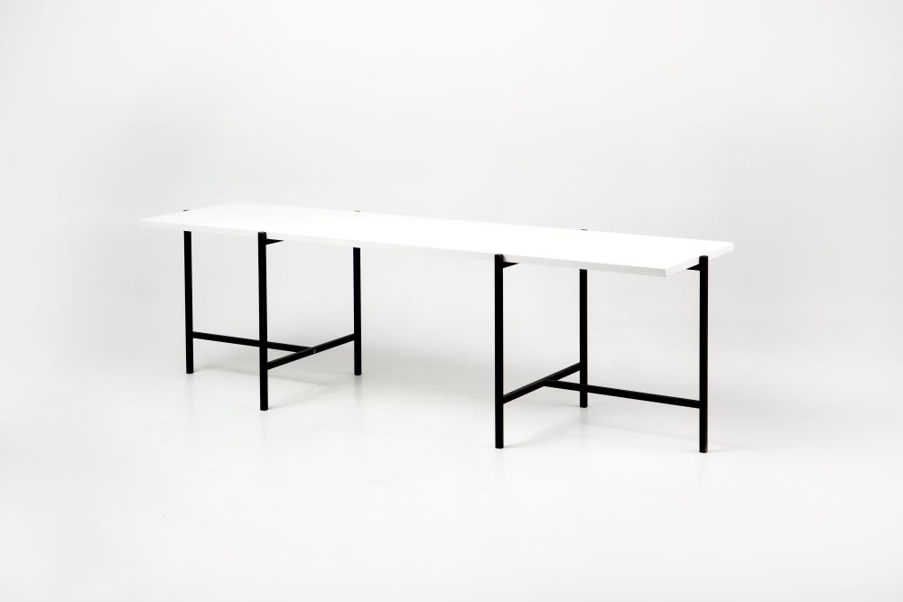 Amanoriginal presents their new furniture collection TSS (T Steel System) that combines wood with metal. Its main component is a T‑shaped firm steel construction. This basic segment is identical for various pieces of furniture: table, bookcase, chairs or shelves. It is possible to arrange it in different ways, encouraging its user to interact in a playful fashion. A minimalist furniture that offer maximum application stands out thanks to its light shape and is suitable for both product presentation as well as an independent piece in any interior.